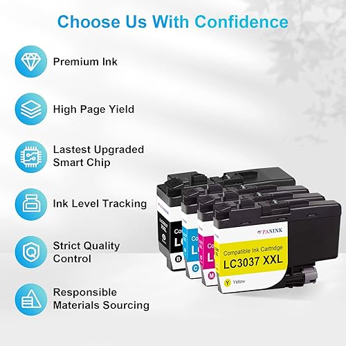 High Page Yield: Up to 3,000 Pages per Black LC3037XXL Ink Cartridge and 1,500 Pages per Color LC3037XXL Ink Cartridge (at 5% coverage of A4 paper,depends on printer and usage)