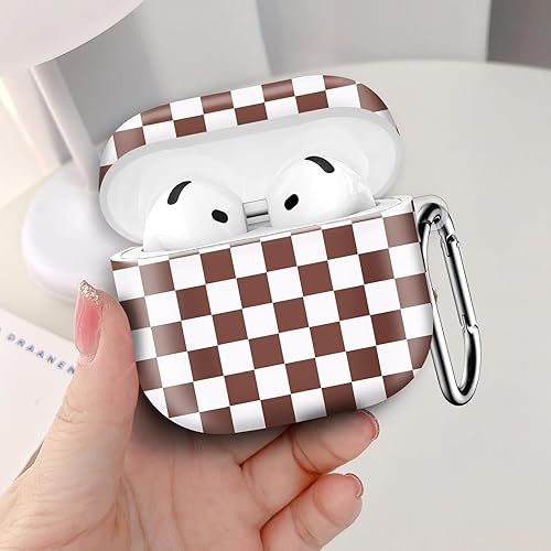Compatible with AirPod 4th Generation 2024 Case, Shockproof Anti-Drop Protective Cover, Cute Case for Women Men with Keychain(Checkered Beige)(White Brown Checker)