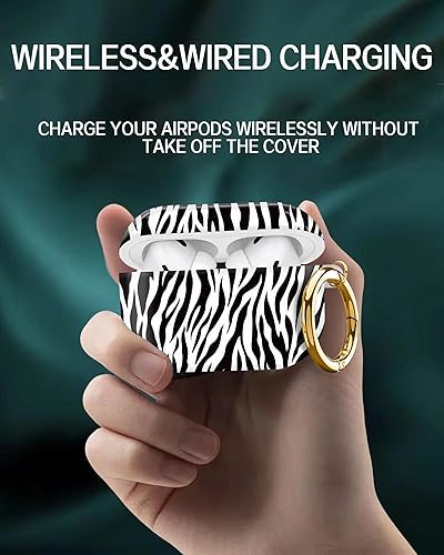 Compatible with AirPod Pro 2nd//1st Generation Case Cover with Gold Keychain,Full Protective Shockproof Wireless Headphone Case for Airpod Pro 2023/2022/2019(Flamingo)(Zebra pattern)