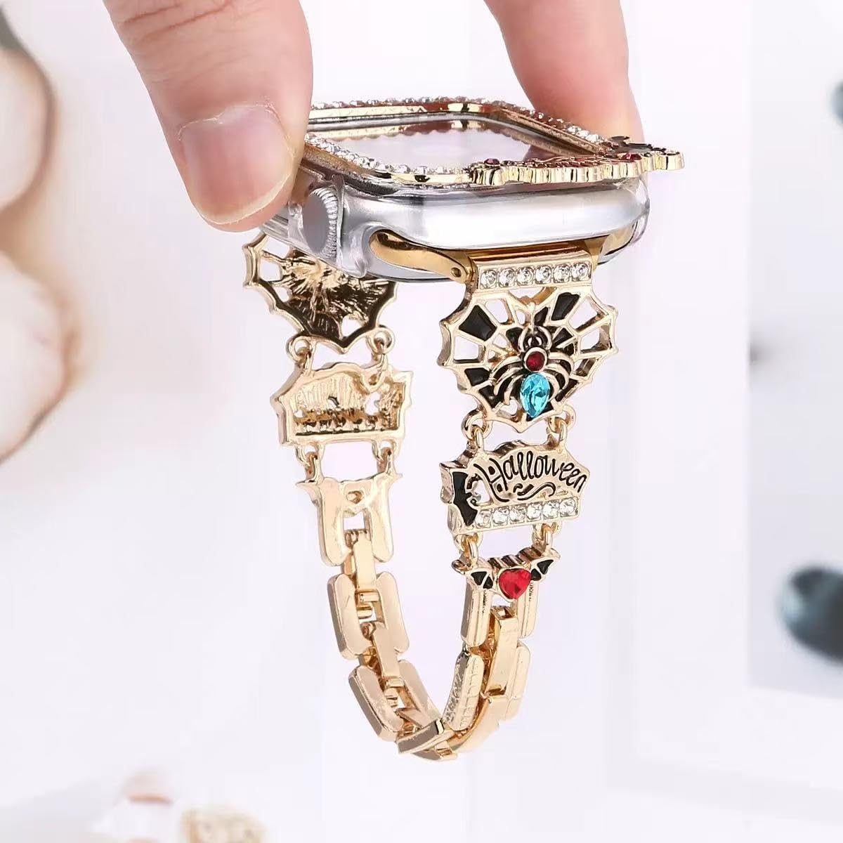 This Cute Christmas Halloween metal band with case set sparkles with bling crystal and shiny rhinestones, giving your watch a stunning look.