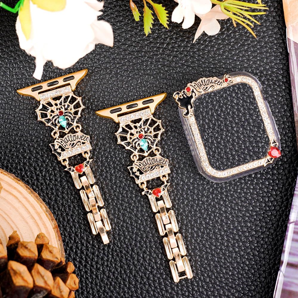 Compatible with Apple Watch Bands with Bling Protective Case 41 mm 40mm 45 mm 44mm, Cute Christmas Halloween iWatch Series 9/8/7/6/SE/5/4 Adjustable Metal Chain Charms Bracelet for Women(Spider/Halloween,41mm/40mm)