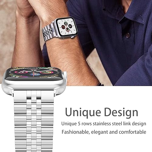 Unique Design: Unique 5 rows stainless steel link design, fashionable, elegant and comfortable to wear. With adapters on both ends, locks into your watch precisely and securely