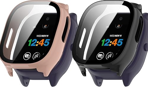Compatible with Gizmo Watch 3 Screen Protector Case, Shockproof Hard PC Bumper Case Tempered Glass Scratch Resistant Protective Cover for Gizmo Watch 3 Accessories (Clear+Pink)(Black+Blue)