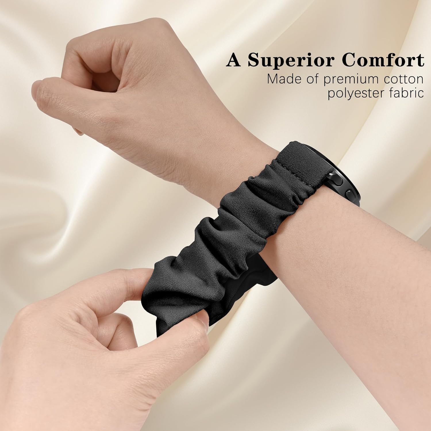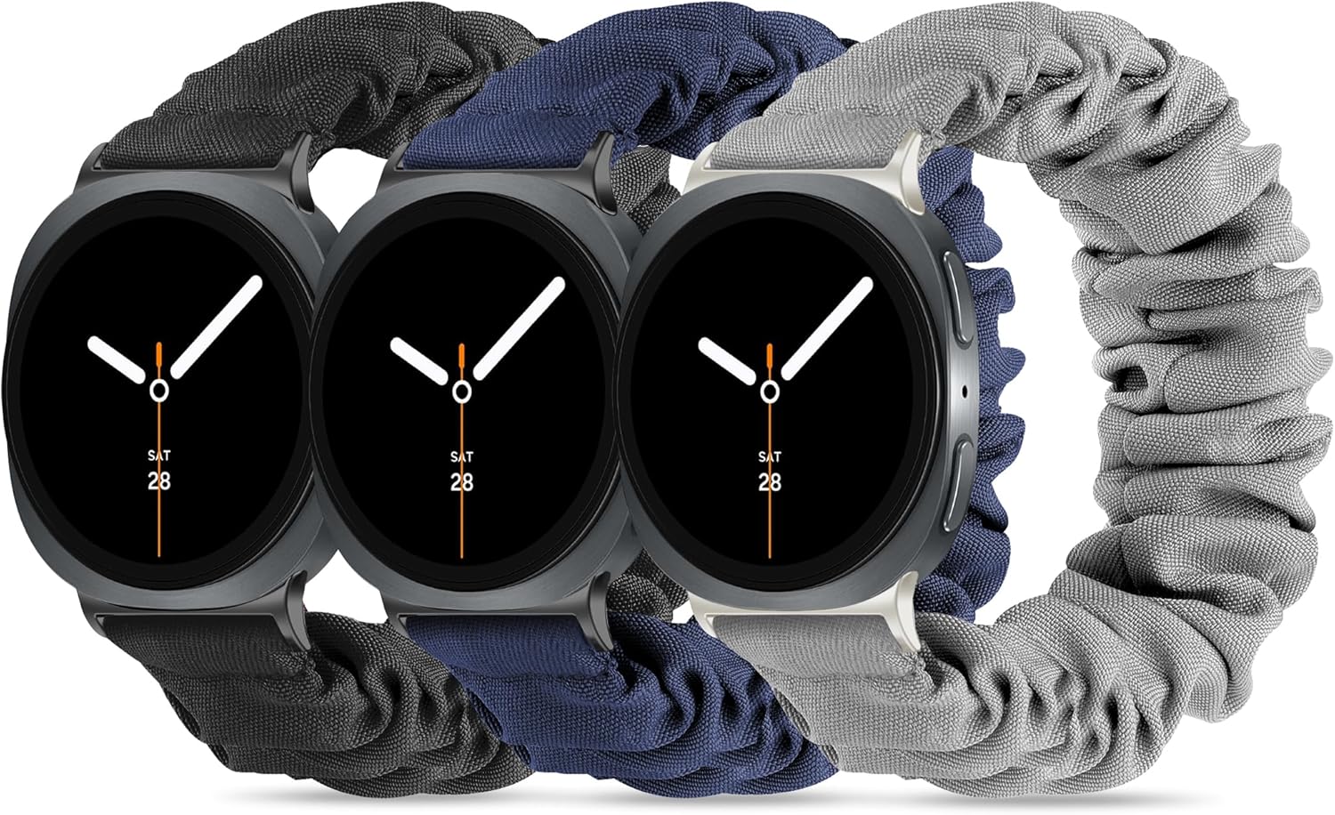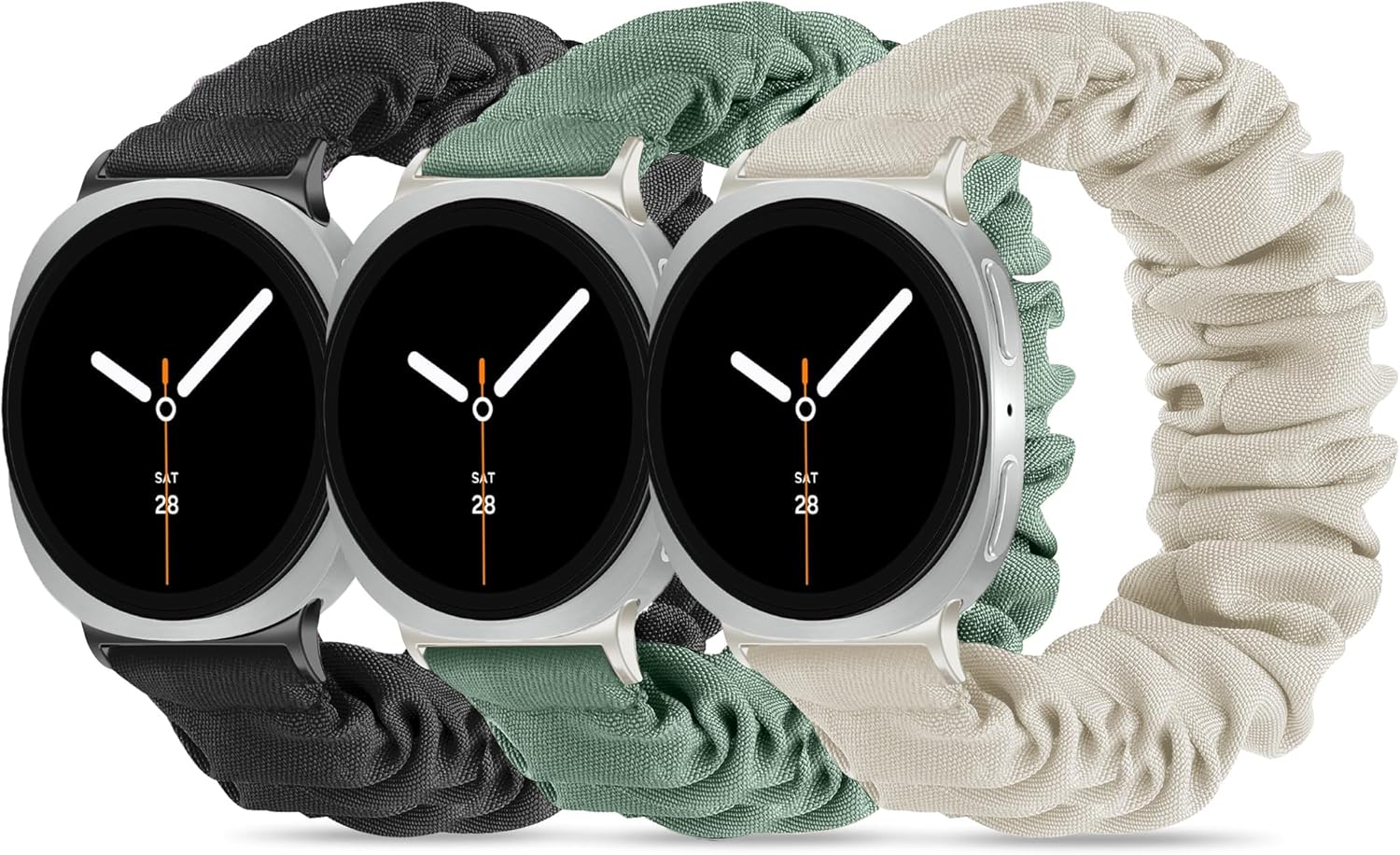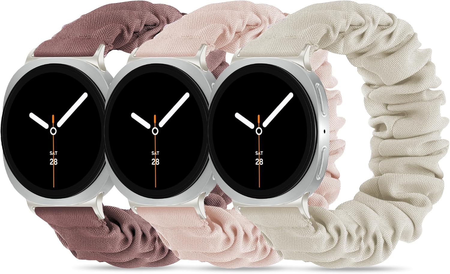 Comment on "Compatible with Samsung Galaxy Watch 8 Band 40mm 44mm/Galaxy Watch 8 Classic 46mm, Stretchy Scrunchie Cute Elastic Fabric Nylon Bands(3-Pack ) Women(03# Black/Pink/Starlight,Large: 6.2"-7.8"(160mm-200mm))"