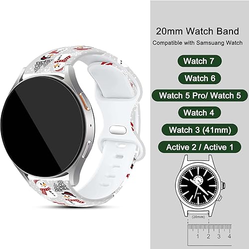 Strenme Compatible With Watch Band Samsung Watch: 20mm Christmas Bands Strenme Compatible With Watch Band Samsung Galaxy Watch 7, Watch 6, Watch 5/5Pro (40mm/45mm), Galaxy Watch 4 (40mm/44mm), Galaxy Watch 4 Classic (42mm/46mm), Galaxy Watch Active 2 (40mm/44mm), Watch Active (40mm), Galaxy Watch 3 (41mm), Galaxy Watch (42mm). Bands also fits other smartwatches with 20mm width watch lugs