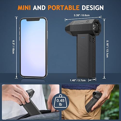 Lightweight and Portable Design: The cordless air duster weighs only 0.45 pounds; it's lightweight and portable, comfortable to hold, and easy to carry and store. You can easily fit it in a toolbox, backpack, or even your pocket. It's ideal for indoor cleaning, outdoor travel, and dusting inside and outside your car.