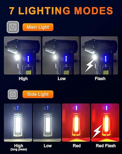 BRIGHT LED ILLUMINATION: This electric air duster features both a built-in LED main light and COB side lighting that brightly illuminates dark, hard-to-access areas, helping you clearly see and remove hidden dust and debris. To turn the sidelight on, simply long-press the switch button. The main light supplies 3 light modes and the side light supplies 4 light modes, which can adapt to different scenes.