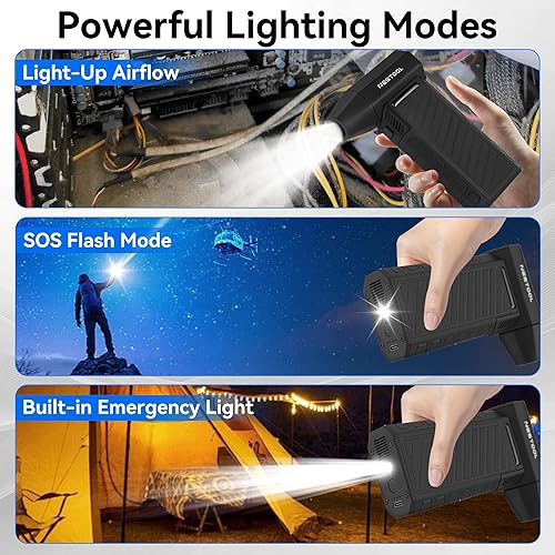Safety and Convenience: Your safety is our top priority! This blower is crafted from high-hardness, high-temperature resistant materials and built-in Large capacity battery (protection against temperature, current, and short circuits). No water or ice formation occurs during cleaning. It protects your electronics from liquids. The 2-in-1 dust collector with a flashlight featuring direct light, flash, and SOS modes ensures you can clean in any situation, day/night, indoor/outdoor use.