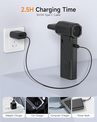 【Fast Charging】The air duster supports Type-C charging and fully charges in just 2.5 hours. It provides up to 100 minutes of runtime on the first gear and offers 4 charging options. To ensure optimal performance of your W20 air duster, please fully charge the battery before use