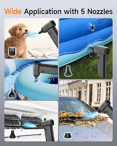 【Versatile Cleaning Tool】 Featuring 5 nozzles, the W20 electric compressed air duster is perfect for cleaning electronics like PCs and keyboards, as well as for home, car, and outdoor use. It’s also great for inflating gear or managing campfires, making it a must-have for multiple scenarios