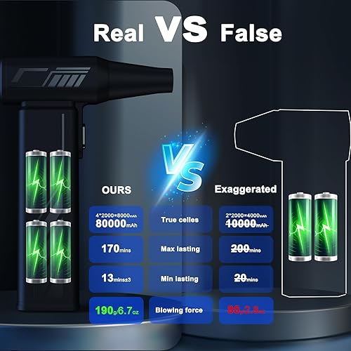 Comment on "Compressed Air Duster with Verified 6.7 oz Blowing Force, PC Cleaner Air Duster Rechargeable, 5-Speed Compressed Air Blower 21 Accessories for Computer, Keyboard, Car, Home Electronics"