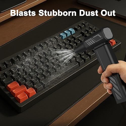 Compressed Air Duster with Verified 6.7 oz Blowing Force, PC Cleaner Air Duster Rechargeable, 5-Speed Compressed Air Blower 21 Accessories for Computer, Keyboard, Car, Home Electronics
