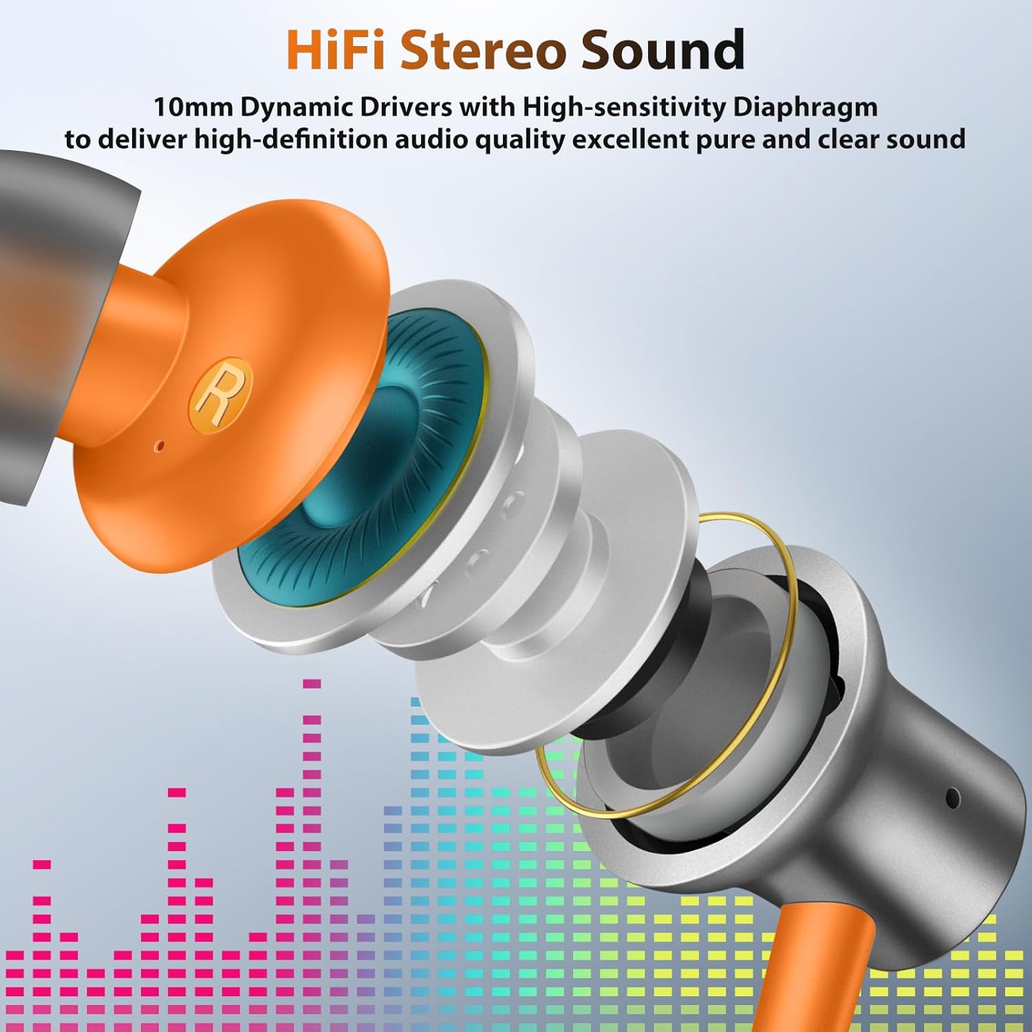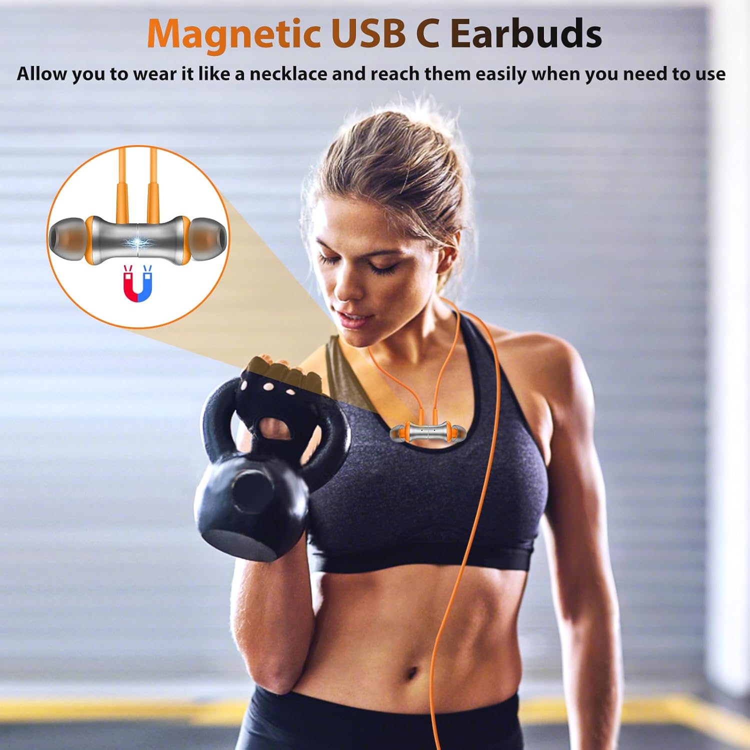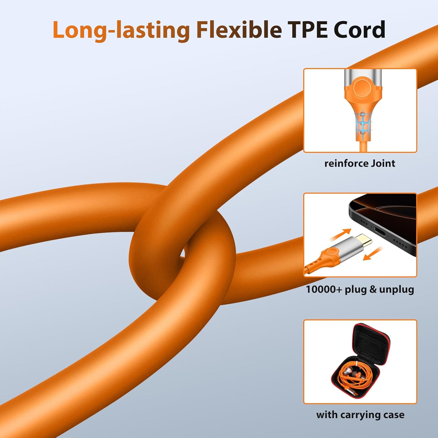 COOYA USB C Headphones HiFi Stereo In-Ear Wired Earbuds with Mic Volume Control for Samsung Z Fold Flip 7 S25 Ultra A16 Magnetic Earbuds for iPhone 17 16 Pro iPad 10 Pixel 9 8 School Chromebook Laptop(Orange)
