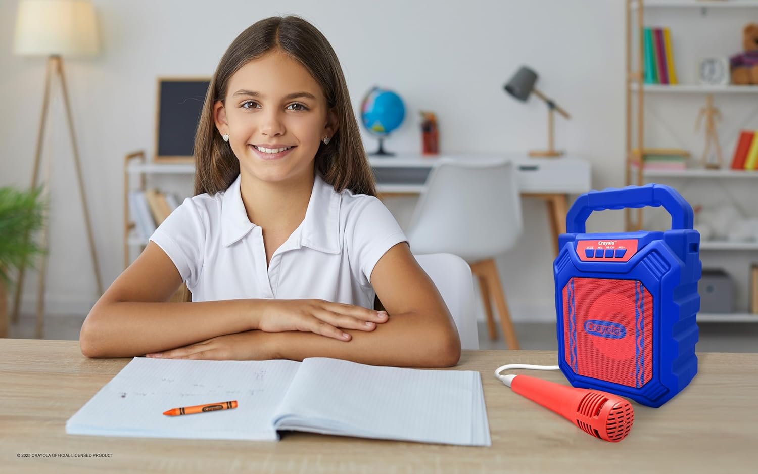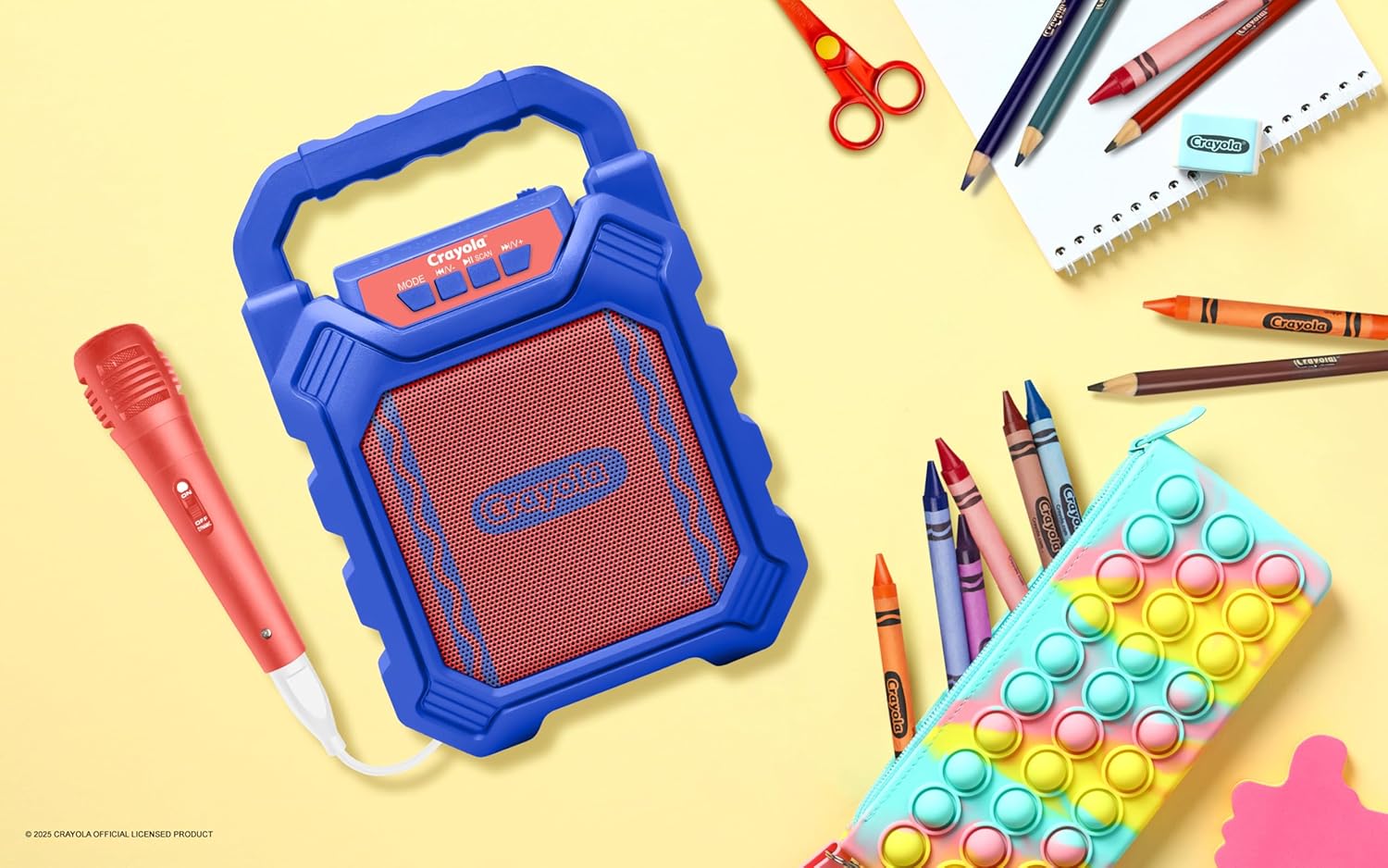 CRAYOLA KARAOKE BLUETOOTH SPEAKER: Bring Color to Your Sound! Add a splash of color to your music experience with this Crayola Bluetooth Speaker! Inspired by the iconic Crayola brand, this vibrant karaoke speaker combines playful design with impressive sound quality making it the perfect choice for both kids/adults who want to add a little fun to their tunes. Whether you're jamming out at home or taking it on the go, this speaker delivers clear, crisp sound wrapped in a colorful, Crayola package.