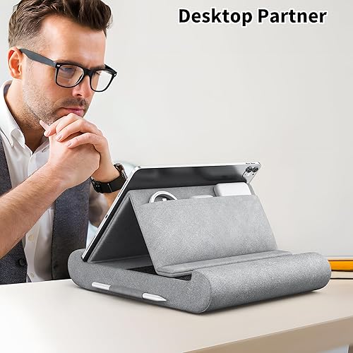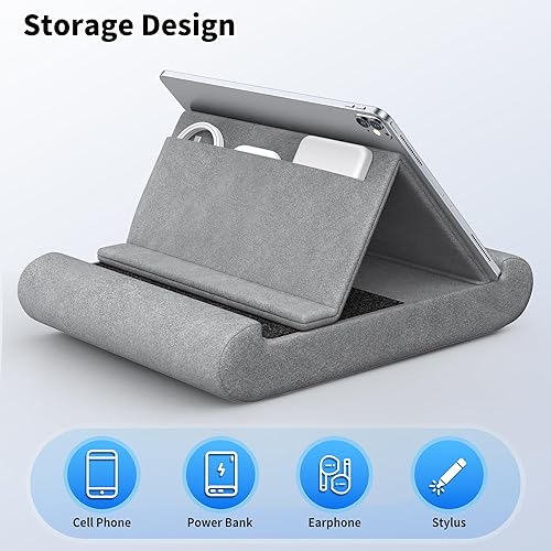 Wide Compatibility: The Pillow Tablet Stand is compatible with 4.7 and 13 inches tablets, mobile phones and Switch, such as iPad A16, iPad Air(M3), iPad Pro 13 /12.9/ 11/9.7, iPad 1/2/3/4, iPad Air 2, iPad Mini 1/2/3/4/5, Surface Pro series, iPhone 17 16 15 14 13 12 11 Pro Max Plus mini, Surface Pro, Switch, books and more 4.7-13 inches devices.