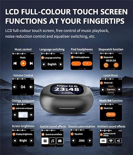 Lcd Color Touch Screen: Navigate your music and calls easily with the intuitive LCD color touch screen on our cutting-edge earbuds, providing a modern and user-friendly experience for all your audio needs