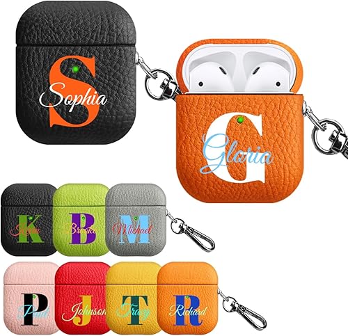 Custom Name Case for AirPods 4 Add Your Own Personalized Initials Monogram Vegan Leather Luxury Cover for Air Pods 4th Gen with Keychain Full-Body Protective Wireless Charging Front LED Visible(style 2,AirPods 2nd/1st Gen)