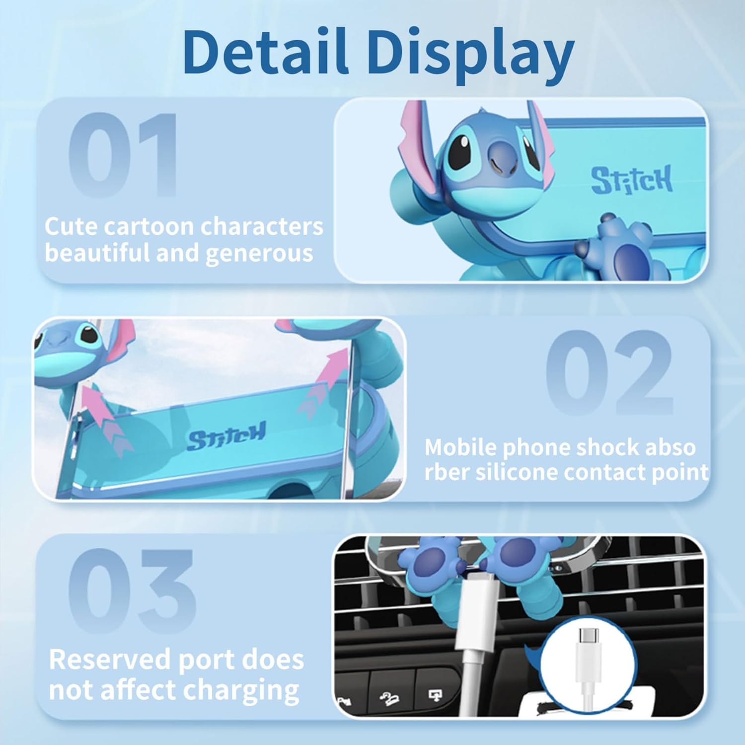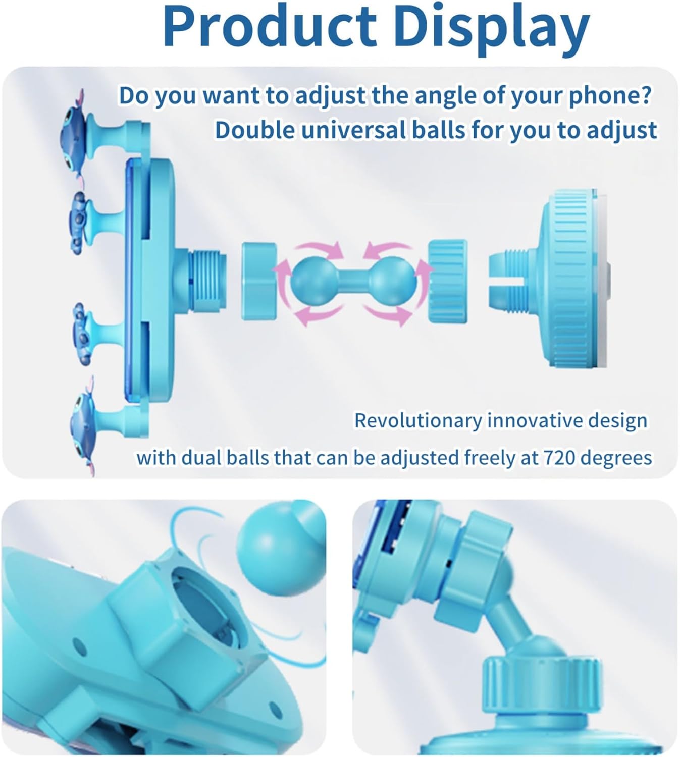 720° Adjustment for Custom Viewing Angles: The adorable cartoon phone mount features dual ball joints, enabling 720° rotation for any angle. Whether you need a clear view for navigation or a comfortable angle for music/video playback, it effortlessly adapts, significantly enhancing your driving experience.