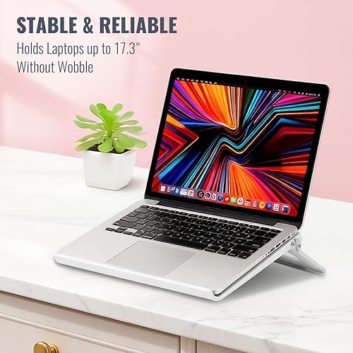 Cute Pink Laptop Stand for Desk – Adjustable Foldable & Portable Laptop Riser with Silicone Anti-Slip Pads, Ventilated & Sturdy Computer Stand for MacBook, Notebook, Office, Home, or Travel(White)