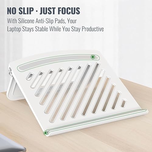 Non-Slip & Cooling Design: Our laptop tilt stand features premium silicone pads to prevent sliding, while open ventilation keeps your laptop cool and running smoothly