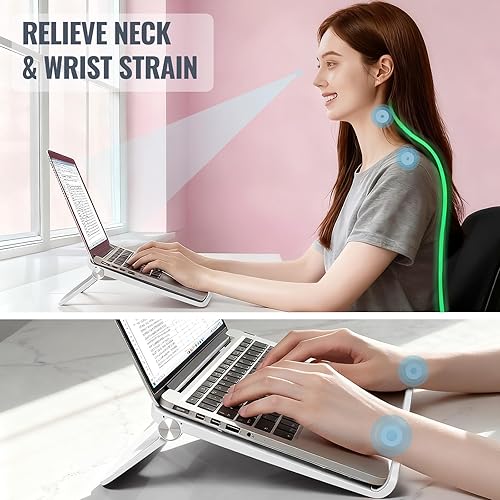 Relieve Neck & Wrist Strain: Designed as a laptop stand pink users love, it elevates your laptop to eye level, improving posture and comfort during long hours of work, study, or video calls. Say goodbye to stiff necks and sore wrists