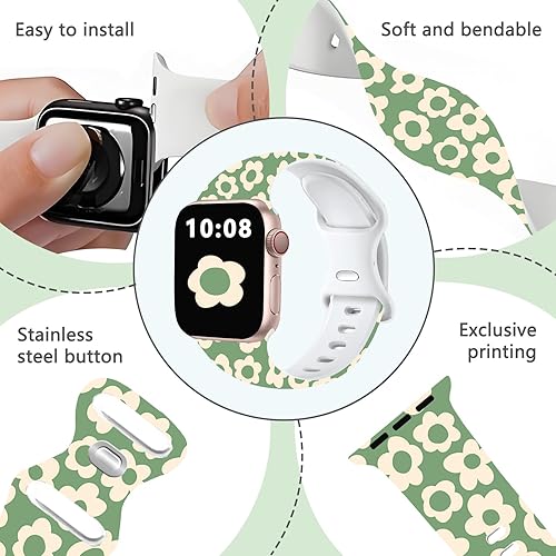 【Latest 10 Series Colors & One Size】Our watch bands come in a variety of rich pastel colors, including the latest 10 series official colors, cherry, bow, skull, bohemian floral, abstract rose, forget-me-not, strawberry, beautiful butterfly, plaid, trendy flower, suitable for all ladies and men. Perfect match with your outfit and can be easily changed to suit various occasions. 38mm/40mm/41mm size fits 5.1"-7.1" (130mm-180mm) wrist;