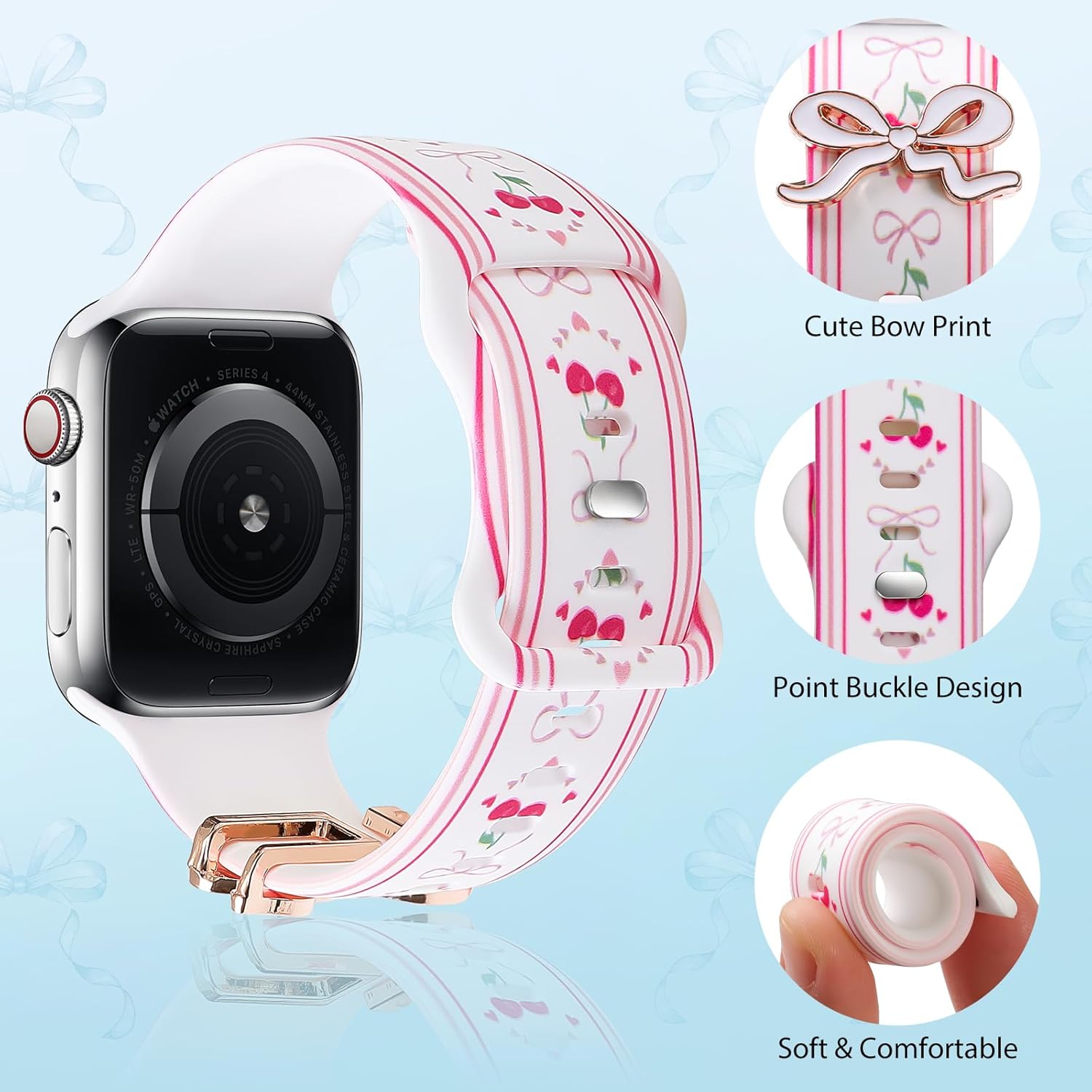 Comment on "Cute Strap for Apple Watch Bands 42mm 41mm 40mm 38mm 46mm 45mm 44mm 49mm with Bow Charm, Soft Silicone Bracelet for iWatch Band Series 11 10 9 8 7 6 5 4 3 SE3 SE2 SE Ultra Women(Pink,49/46/45/44/42(Series 3/2/1)mm)"