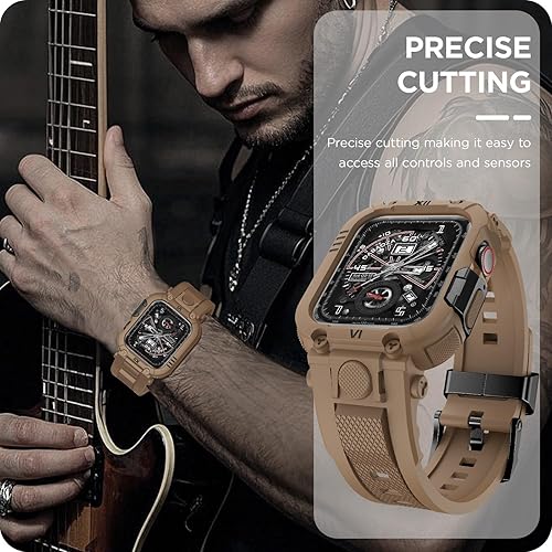 DABAOZA Compatible with Apple Watch Band 49mm/46mm/45mm/44mm/42mm Case for Men, Sport Shockproof Rugged Protective Strap Bumper Cover for iWatch SE Ultra 3/2/1 Series 11/10/9/8/7/6/5/4/3(Desert Tan,45mm/44mm/42mm)