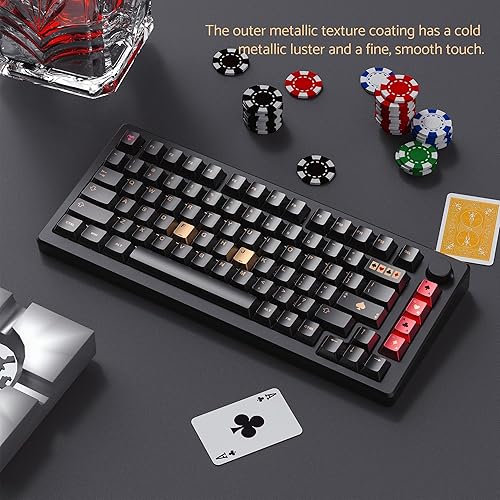 【 Unique Poker Theme and Luxurious Metallic Texture 】 This key caps is inspired by classic playing cards. Its main body is deep black, and it is specially paired with several pure gold keycaps (such as ESC, Enter keys, etc.), just like the trump cards in the game of chess and cards. The outer layer of the keycaps is treated with a special metallic paint process, presenting a low-key yet luxurious metallic luster, which greatly enhances the overall texture and visual impact of the keyboard.