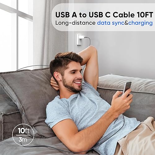 3A Fast Charging: Our 10ft usb a-c cable supports 5V 3A fast charging performance, compatible with most smartphones (Galaxy S25/S24/S23/S22/S21, iPhone 15/16, Moto, Google Pixel 9/8/7, etc.) and gaming devices like PS5, Xbox, and tablets.