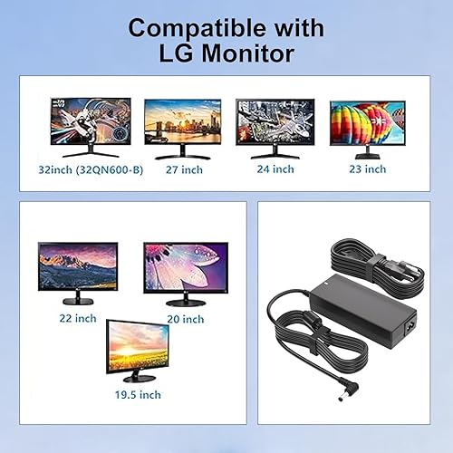 Compatible With LG Monitor Power Charger Safety & Reliability: CE FCC RoHS Certified for Safety with Over-Voltage Protection, Over-Current Protection, Over-Load Protection, Short Circuit Protection.