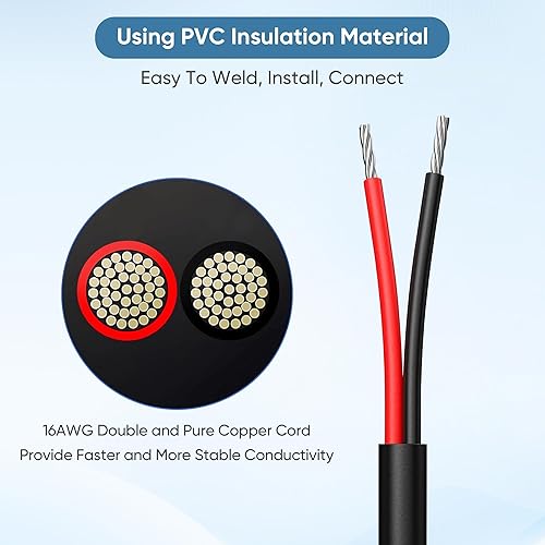 【Real 16AWG DC Cord】: Crafted with double 1.5mm² pure copper wire,durable 16AWG DC cable,thicker wire diameter than other AWG in market,provide faster and more stable conductivity,facilitating seamless integration with other equipment. (Note: Does not support data transfer.