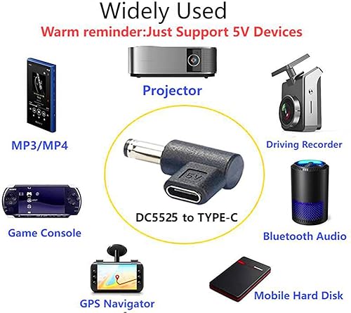 ❤【Widely Used】: This DC5525 male to Type C female adapter can supply charge for 5V power devices,eg projector,MP3,MP4,driving recorder,bluetooth sound,digital camera,desk lamp,GPS Navigator,mobile hard disk