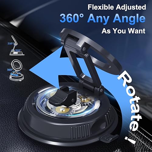 ROTATION & 2-AXIS ADJUSTMENT HOLDER: This car phone holder features a 360° rotating base and 180° dual-axis folding metal arms, allowing easy angle adjustments to suit your needs.You can rotate your smartphone or device at your own will, providing the best viewing angle