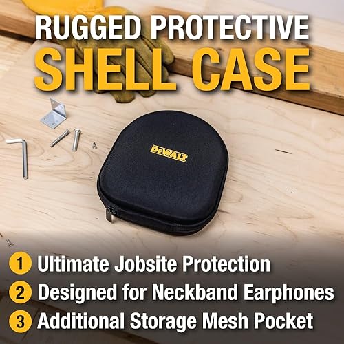 DEWALT Bluetooth Neckband Headphones Protective Case Sets, Wireless Earbuds w/ 30H Playtime, Noise Isolation, IPX6 Jobsite-Ready, EVA Shockproof Water-Resistant Storage Bag Bundle