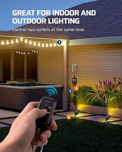 [Wireless Motion Sensor & Outlet Combo] Enjoy flexible installation with a detachable motion sensor and plug in receiver—mount or place them anywhere you need; the strong RF signal reaches up to 100ft, ideal for patios, garages, and porches for no-dead-zone control
