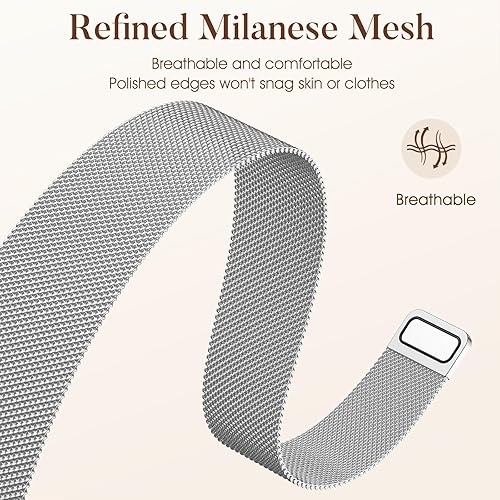 【Breathable & Premium Milanese】Our milanese bands made from durable,rust-resistant stainless steel, this milanese band features a lightweight woven mesh that promotes airflow.This keeps your wrist cool and dry,helping to minimize sweat during extended wear.breathable and comfortable to wear,polished smooth edges prevent scratches on clothes