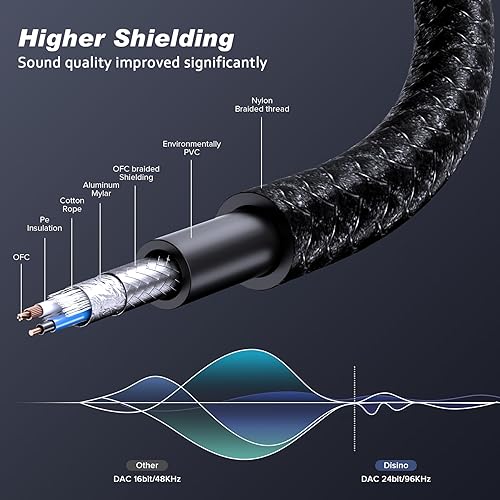 Excellent DAC Chip:TYPE-C to dual RCA audio cable built-in superior sound quality DAC chip, achieve 32bit/384kHz audio output capability, improve the signal-to-noise ratio, reduce frequency range ratio, maintain the original sound quality, bring you better sound quality and HIFI effect; double shielded design, no noise/buzz or hiss; gold-plated connectors and OFC conductor design, minimize signal loss and ensure high fidelity lossless sound quality.