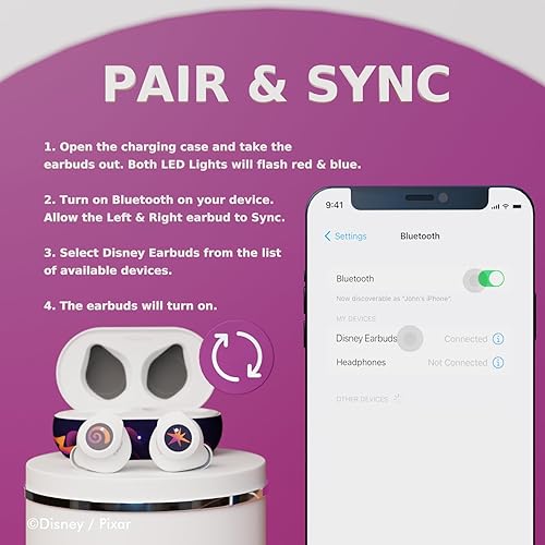 Disney/Pixar Inside Out 2 Bluetooth Earbuds w/Charging Case- Wireless Headphones w/Built-in Mic+ Up to 30 Hrs Playtime- Inside Out 2 Gifts for Girls, Boys, Women, Men, All Fans of Inside Out 2 (Joy)(Anxiety)