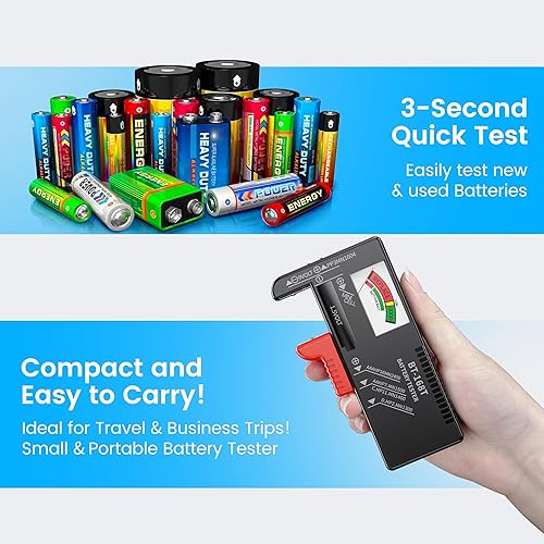 High Compatibility: Small battery tester for AAA, AA, C, D 1.5V alkaline batteries, 9V batteries, and button-cell batteries, ensure accurate testing for your everyday battery needs