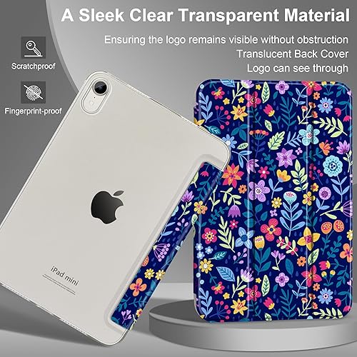 DONGKE for iPad mini 7 (A17 Pro) 2024 & iPad mini 6 2021 8.3 Inch, Slim Foldable Stand Hard PC Translucent Back Shell Smart Cover for iPad mini 7th/6th Generation [Auto Wake/Sleep] - Chessboard(Cute Floral)