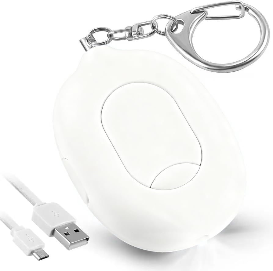 SUITABLE FOR EVERYONE - Smart and convenient device that can help you feel safe and secure wherever you go. It has a dual function of sound and light alarm that can scare off any potential threats and attract attention from others.This safety keychain for women self defense alarm is also used by seniors to call for help in case of fall, medical emergencies, accidents, or allergic reactions. Great gift for parents, college students and everyone that works evenings. Wonderful defense safety keychain for everyone.
