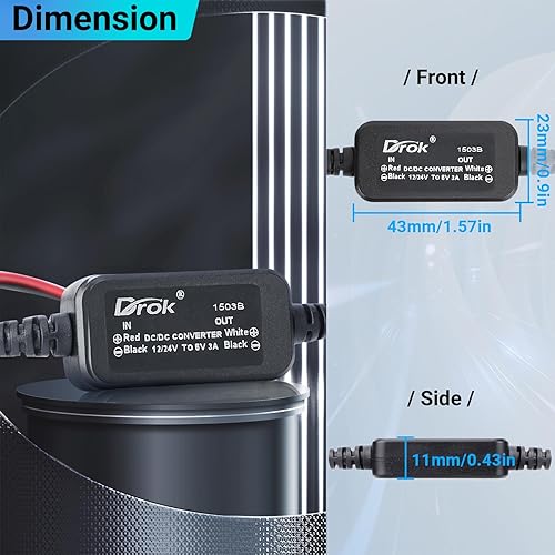 DROK 12V to 9V DC Converter, 11-32V to 9V 3A DC Buck Converter, Voltage Regulator, Power Supply for RV Vehicle Car Truck Solar Panels(12V/24V to 6V)