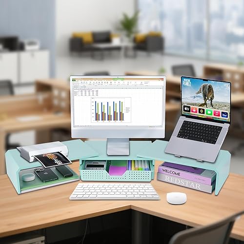 Comment on "Dual Monitor Stand Riser with Drawer, Desk Organizer and Accessories, Metal Laptop Stand for Desk, Workspace Desktop Stand for Computer, Laptop, TV and More (White)(Sky Blue)"