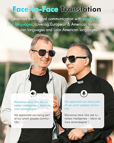 【Real-Time Translation for 160 Languages】:Whether you're travelling, negotiating business deals, or socialising across borders, you can enjoy seamless translation of voice and video calls right before your eyes with DUCO AI smart sunglasses, now say goodbye to language barriers and enjoy global visions by wearing this AI transaltion glasses for up to 160 international languages, includes English, Spanish, Chinese, French, German, Japanese, Korean and Russian