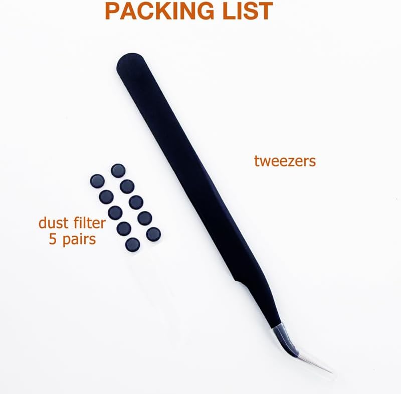 Packing list : 5 pairs nylon dust mesh and tweezers.