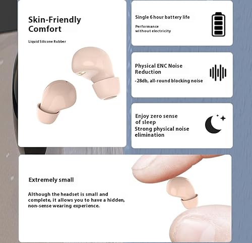 Invisible earbuds wireless bluetooth & Ergonomics Design: Mini earbuds wireless bluetooth are designed according to the shape of the ear, very mini & light, the small wireless earbuds discreet headphones for work design fits snugly in the ear and is not prone to earache over long periods of wear the discreet earbuds