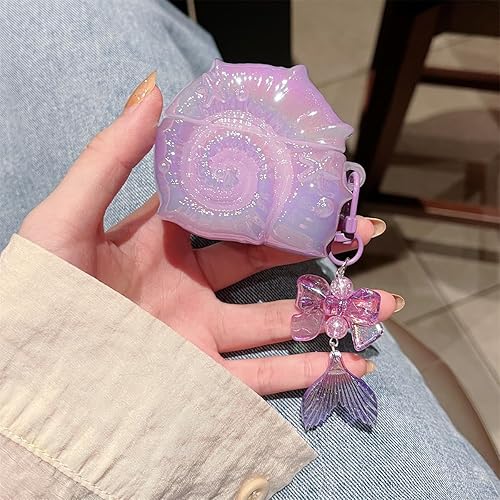 Earbud Case for AirPods 4 with Chain Pendant,Cute Shiny 3D Conch Creative Design,Soft Silicone Protective Cover for Apple AirPods 4th Generation Shell for Women (Purple)(Purple)