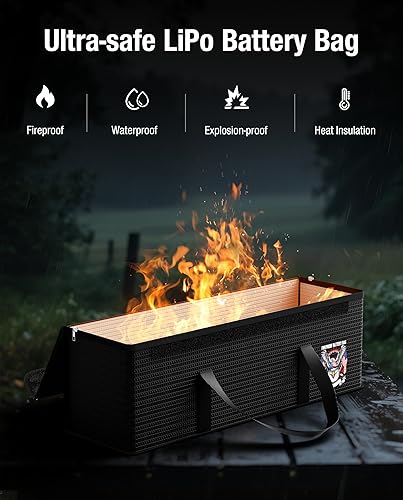 【Fireproof & Explosion-Proof Safety】Crafted from fireproof fiberglass, liquid silicone, and non-woven insulation, our lipo battery bag withstands extreme heat up to 3000°F—ensuring safe charging, storage, and transport for lithium-ion/LiFePO4 batteries. Prevents explosions, fires, and thermal runaway, while also protecting valuables like documents, jewelry, and electronics