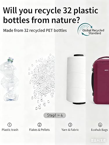【SUSTAINABLE TRAVEL, SOLID PERFORMANCE】 ECOHUB transforms 34 recycled plastic bottles into a rugged, water-resistant backpack—ideal for travel, daily commutes, business trips, and weekend getaways. Its airline-friendly design fits under seats and carry-on compartments, while heavy-duty SBS zippers and reinforced stitching withstand 2,000+ uses. We're all about zero plastic waste + 24/7 support—because great travel should protect both your gear and the planet (Patent Pending)